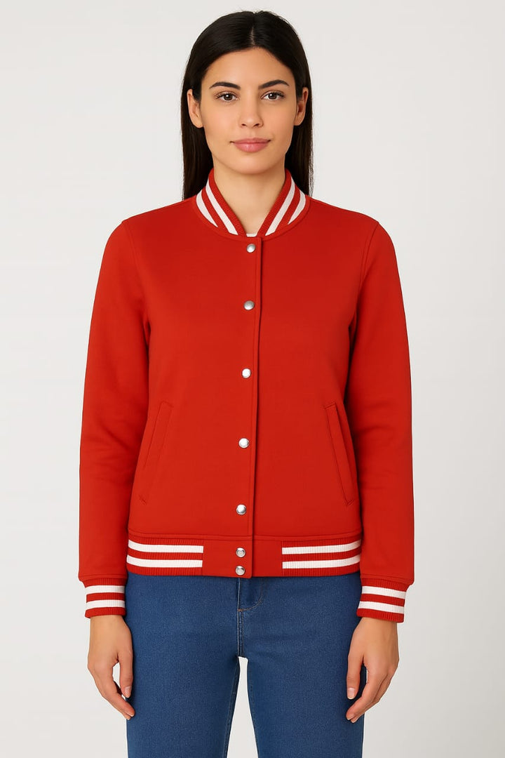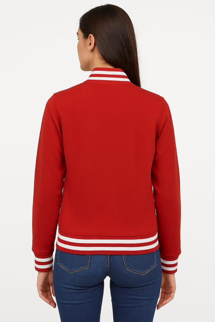 Women’s Red Varsity Jacket – Sporty, Stylish & Comfy